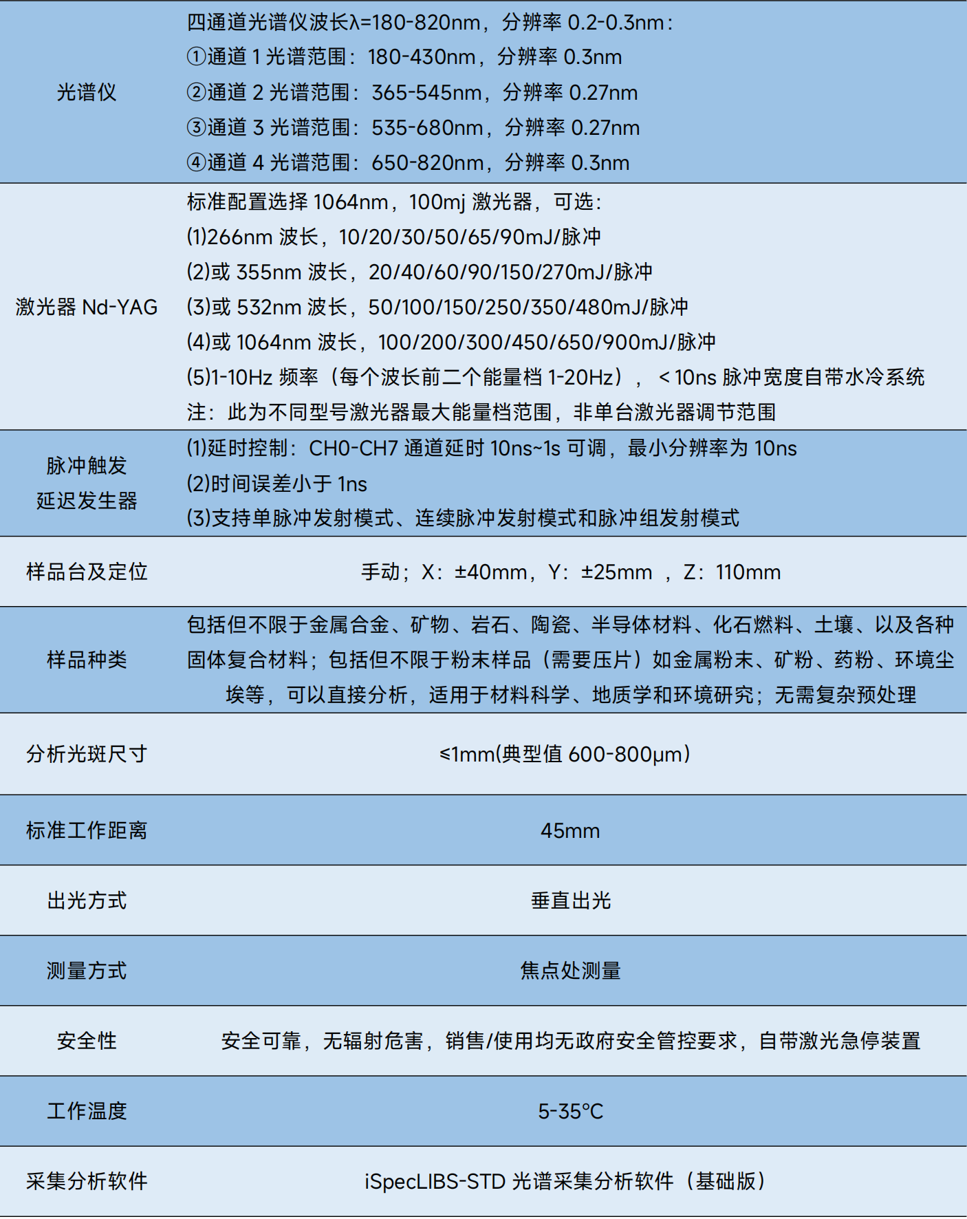 LIBS (Laser Induced Breakdown Spectroscopy)元素分析仪是该技术通过超短脉冲激光聚焦样品表面形成等离子体,利用光谱仪对等离子体发射光谱进行分析,识别样品中的元素组成成分,可以进行材料的识别、分类、定性以及定量分析。