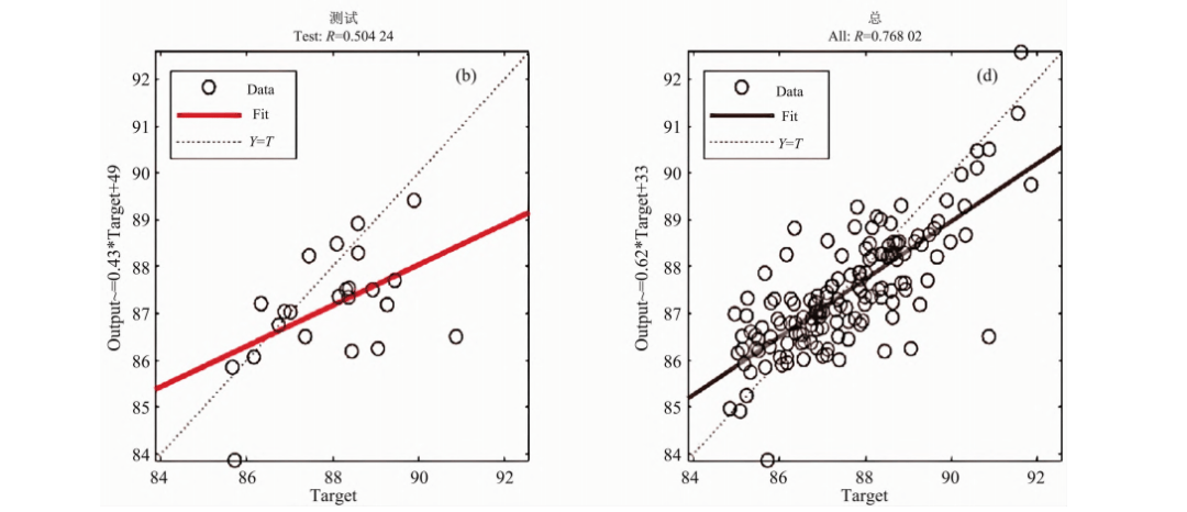 (a):训练集预测结果;(b):测试集预测结果;(c):验证集预测结果;(d):总预测结果