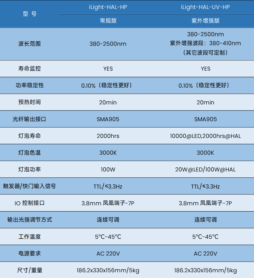 iLight-HAL-HP光源是一款大功率卤钨灯光源,覆盖波长范围380-2500nm,输出功率大,稳定性强 光源输出功率高,光强漂移较小,是可靠的测试光源;是科研、工业、光学应用实验的理想选择。