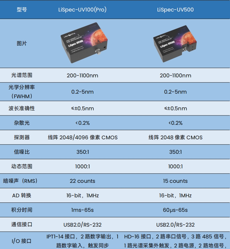 LiSpec-UV系列是莱森光学(LiSen Optics)光谱仪系列中一款明星产品,由于其采样速度快、灵敏度高、可靠性稳定性好,目前已经大量应用于LED/卤灯/氘灯/氙灯/太阳光等辐射测量、荧光测量、紫外吸收测量、透反射测量等工业应用,LiSpec-UV系列高速光谱仪采样了2048/4096像素CMOS探测器,同时采用性能更灵敏更优质的传感元件,及其独有的大数值孔径光学平台设计,友好二次开发SDK,更适合于实验室和工业检测应用。
