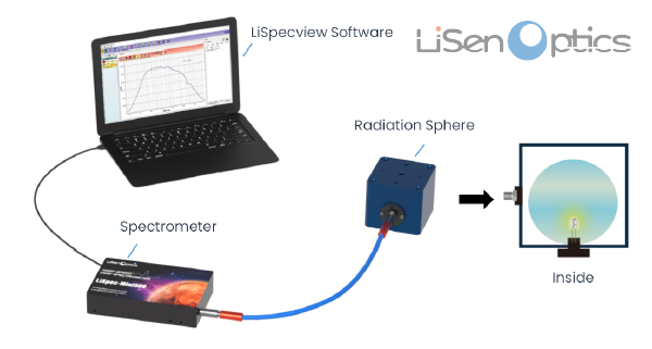 辐射光能量可以量化为辐射通量,即一种表征从光源发出的每秒辐射能量(W)的度量标准。辐射测量一般要通过已知光谱能量分布的标准光源,对光谱仪系统进行绝对辐射标定,才能通过量化参数进行辐射测量。辐射能量与人眼视觉相关联(光度学),就可以得到按照CIE中所定义的表征观测者平均视觉的光谱发光效率函数。因此辐射测量定义辐射度学参数、光度学参数、色度学参数。辐射度学参数主要以辐照度μW/cm2、辐亮度µWatt/sr、辐射通量µWatt以及光子数µMol/s/m2,µMol/m2,µMol/s和µMol,光度学参数流明Lumens、光照度Lux、光强度Candela,色度学参数X,Y,Z,x,y,z,u,v,色温、CRI显色指数等。