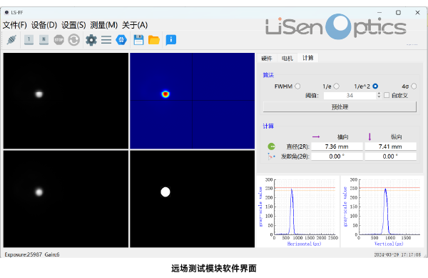 提供四种不同的标准来定义光斑直径,完成对光束远场发散角特性的测量
